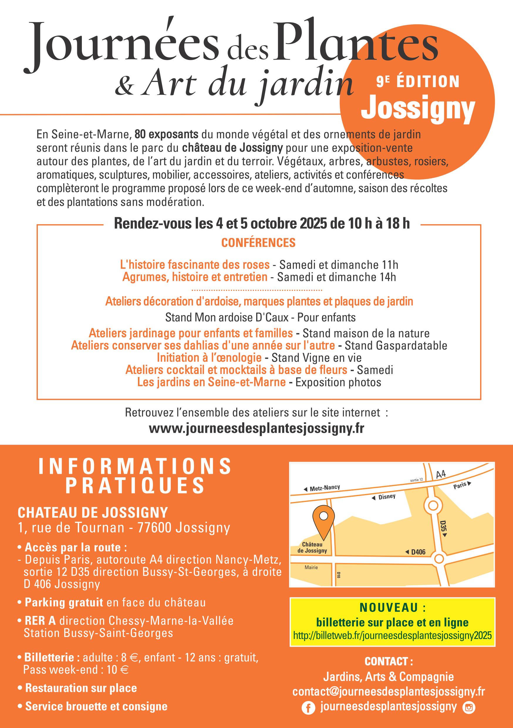 Venez nous retrouver aux journées des plantes & art du jardin,au château de Jossigny les 4 et 5 octobre 2025
